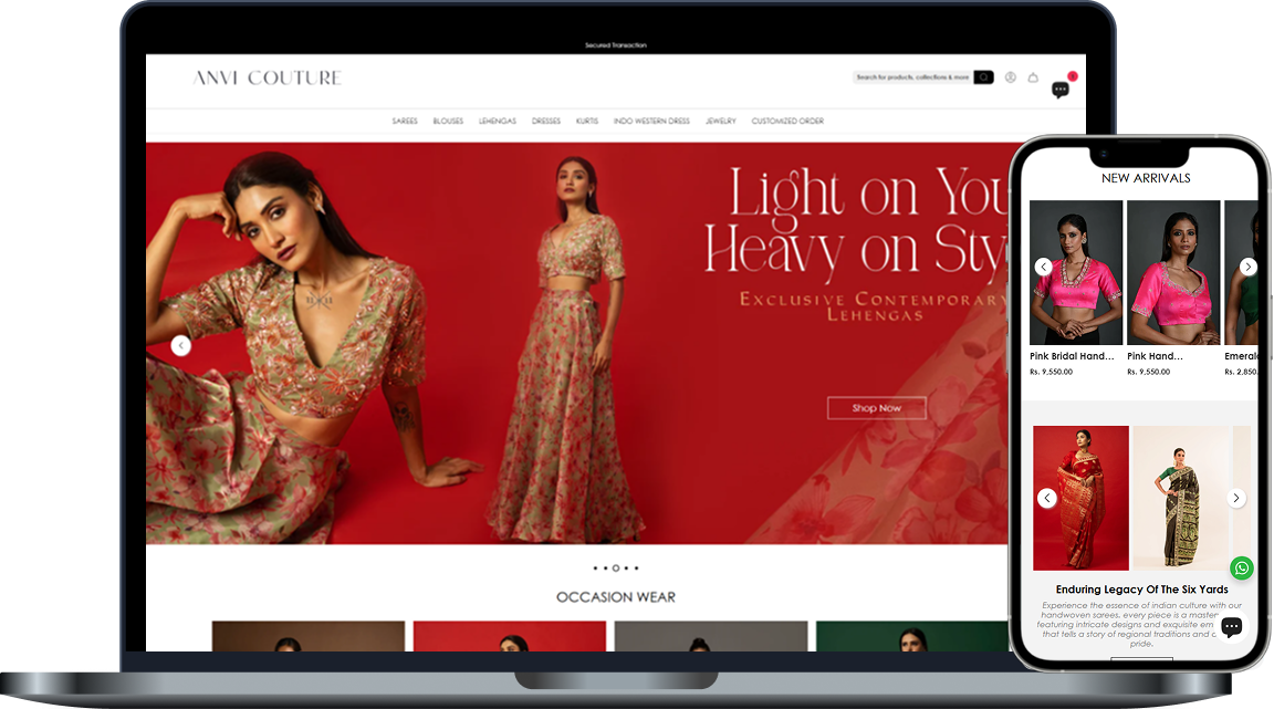 Anvi Couture approached us for the development of their e-commerce website, offering a wide variety of clothing, including traditional, western, and trending outfits with styled jewelry. Apart from that, a customized order system was also needed to give a personalized and unique shopping experience to their customers.