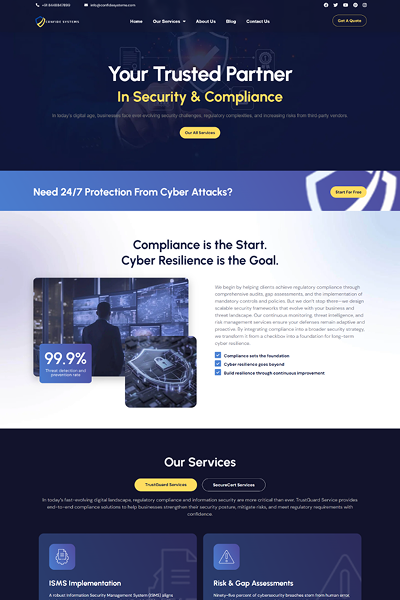 A professional digital platform built to showcase advanced security solutions, compliance frameworks, and risk management services for modern businesses.