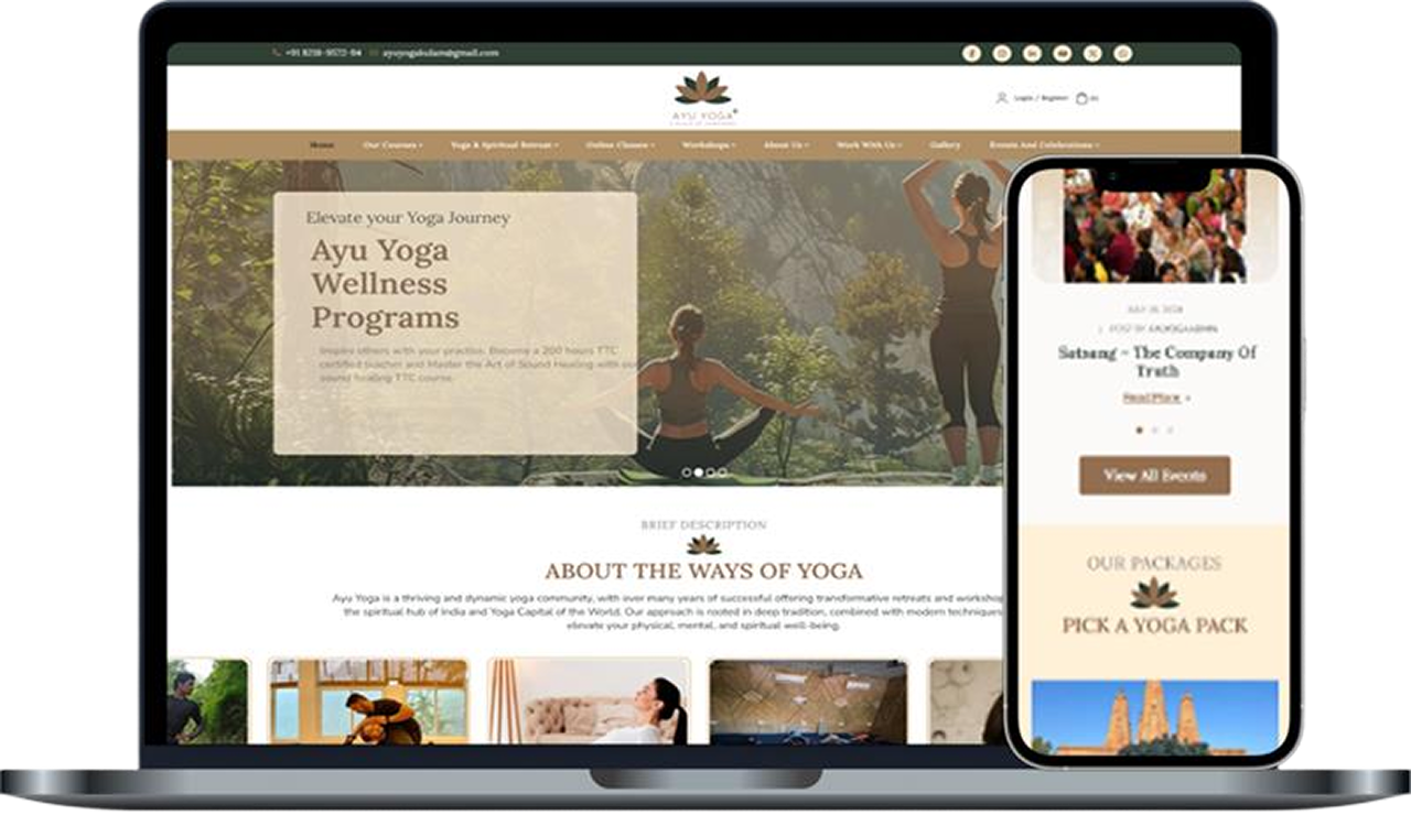The Ayu Yoga client approached us to create a website from scratch that offers different yoga retreats and workshops in the lap of the Himalayas of Rishikesh, Uttrakhand, India. They offer online yoga sessions depending upon the flexibility of the timings of their customers. They also offer different yoga courses with the facility of comfortable stays and nutritious meals.